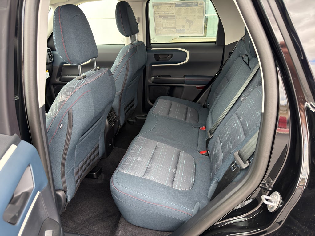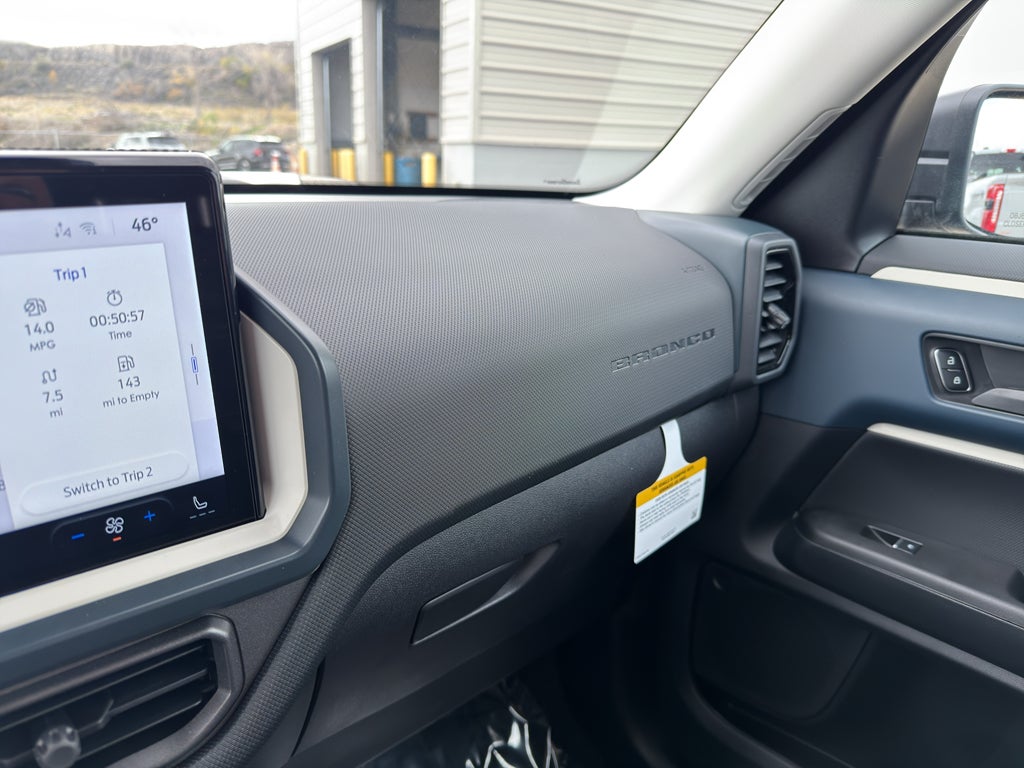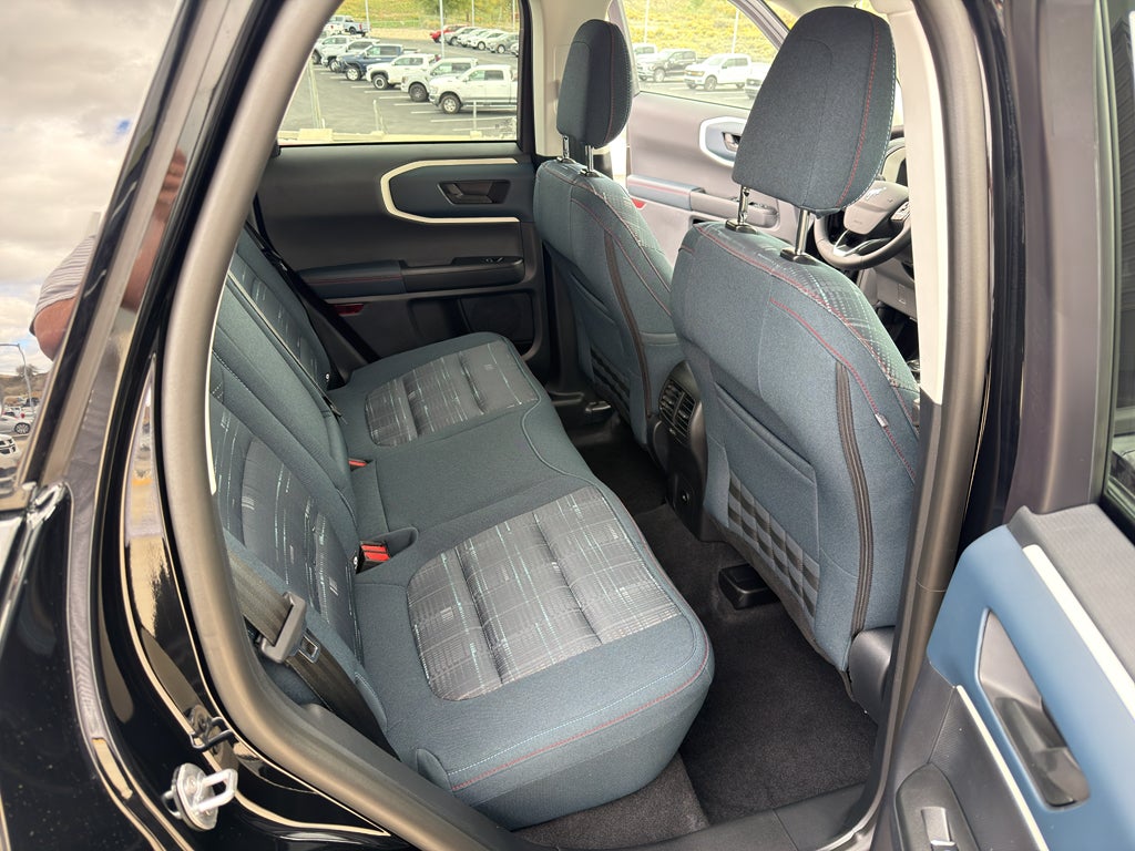 This mid-size suv offers Apple CarPlay for seamless connectivity. The rear parking assist technology on the vehicle will put you at ease when reversing. The system alerts you as you get closer to an obstruction. Bluetooth® technology is built into this mid-size suv, keeping your hands on the steering wheel and your focus on the road. See what's behind you with the back up camera on this mid-size suv. Start this vehicle from inside with remote start. This unit comes equipped with Android Auto for seamless smartphone integration on the road. This model offers Automatic Climate Control for personalized comfort. This model has auto-adjust speed for safe following. The Ford Bronco Sport has four wheel drive capabilities. The vehicle has a 3 Cyl, 1.5L high output engine. Maintaining a stable interior temperature in the Ford Bronco Sport is easy with the climate control system. This unit is painted with a sleek and sophisticated black color.
