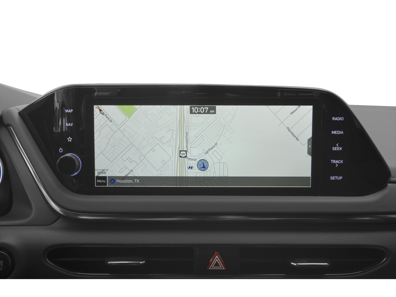 - Radio: AM/FM/MP3/HD/SiriusXM Display Audio w/Nav -inc: 10.25" color touchscreen, Bose premium audio w/12 speakers (1 center channel, 2 dash, 2 front tweeters, 4 door mounted, 2 rear mounted speakers plus 1 rear mounted subwoofer), dynamic voice recognition, integrated Bluetooth®, Blue Link connected car system, Apple CarPlay, Android Auto, USB, diversity antenna for navigation and HERE HD traffic